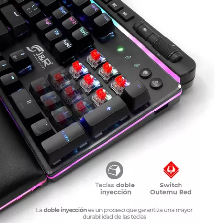 Sumérgete en la acción con los interruptores mecanico Red Switch de última generación que ofrece nuestro teclado gamer. Experimenta una respuesta táctil precisa y rápida, ideal para jugadores que exigen lo mejor en cada clic. Los Red Switches garantizan una pulsación suave y silenciosa, permitiéndote concentrarte en el juego sin distracciones.